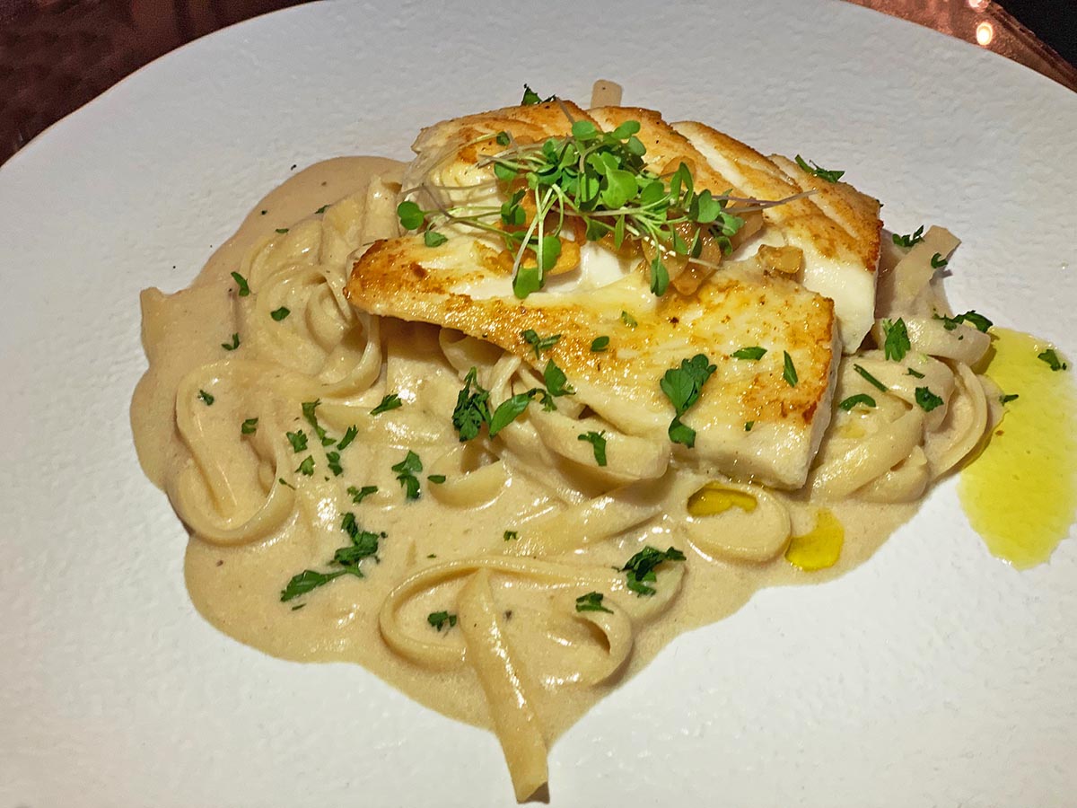 Filete de Chillo al ajillo, montado sobre tagliatelle al aglio olio