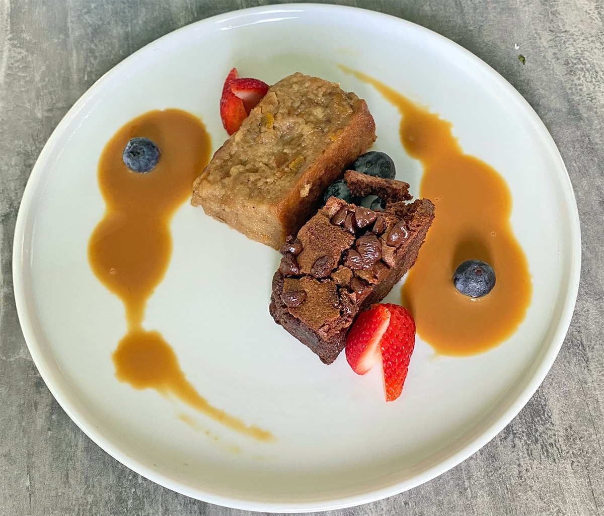 Y para cerrar con broche de oro, llegó el postre.  Un combo de Budín de Guineitos Niños con dátiles, y un Brownie de Pana… aquí botaron la bola de “homerun”