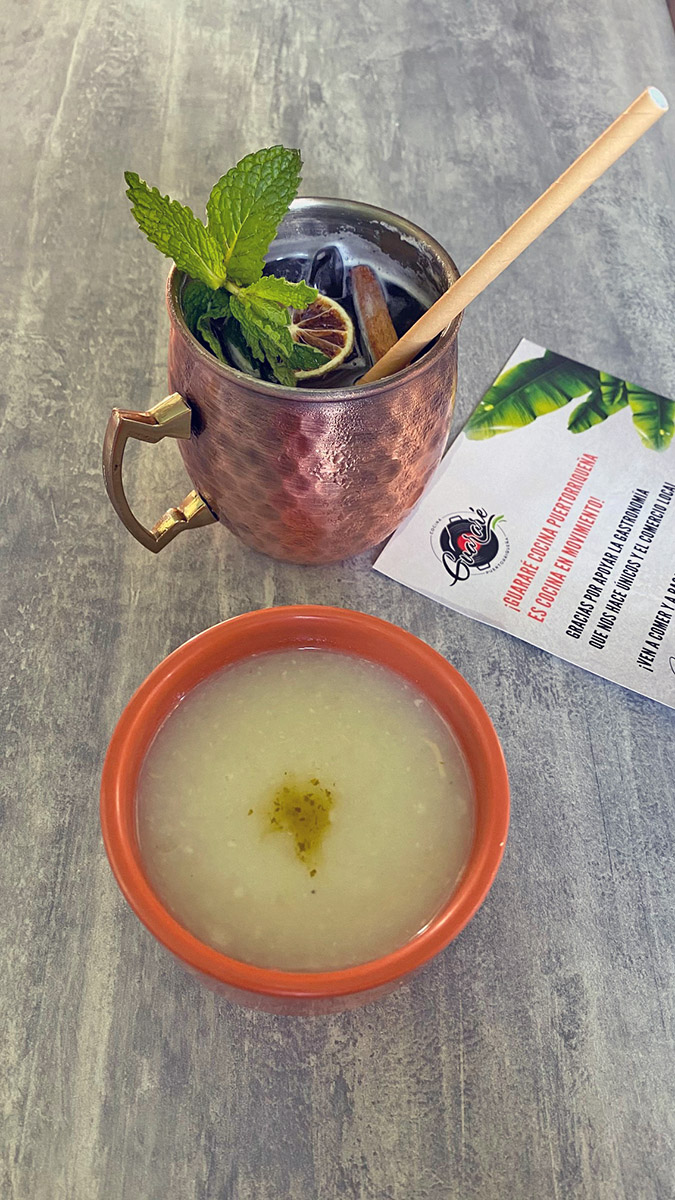 Los visitamos para reseñarlo y comenzamos con un par de cócteles y una Crema de Yuca que estaba muy delicada y con buen punto de sazón.  Muy sabrosa.