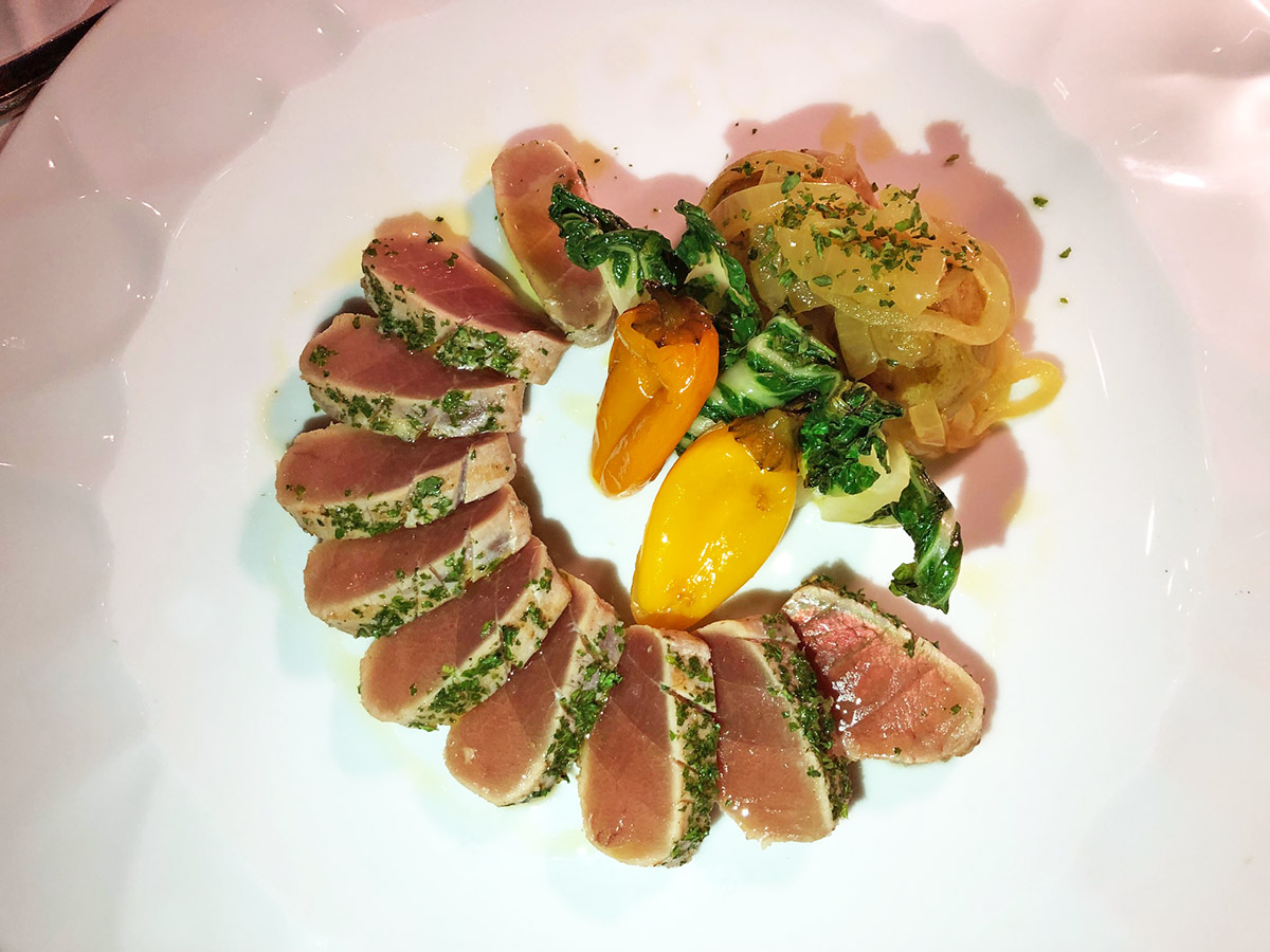 La nueva propuesta gastronómica del conocido Chef italiano Franco Seccarelli, se llama La Lanterna. Un pequeño pero acogedor restaurante ubicado alrededor del patio interior de un edificio colonial del Viejo San Juan. Cuando digo alrededor del patio, es que sus espacios, sea el comedor como el bar, e inclusive su cocina, todos miran hacia el histórico patio. En nuestra visita para reseñarlos fuimos recibidos con un amuse del chef. Crudo de lubina con vinagreta y albahacas junto a un montadito de carpaccio de salmón aliñado con cebollinos verdes, ideales para despertar el paladar. Seguimos con una Ensalada de Arúgula con peras, tomates y láminas de parmesano. Después sirvieron los Zucchine Rellenos de Ternera, tambores de zucchine ligeramente cocidos y rellenos de ternera guisada, coronados con parmesano rallado y montados en un espejo de salsa de tomate fresco con mucho aceite de oliva virgen. Estaban deliciosos, los recomiendo. El próximo plato, los Raviolis Rellenos de Bisonte, esto estaba de campeonato, aquí se lució el chef. La combinación de sabores era algo singular, el bisonte y la pasta al dente con la salsa de vino blanco combinaban de maravilla. Cuando los visiten no lo dejen de pedirlos. Después pedimos un clásico del Chef Seccarelli, Atún Sellado, un buen pedazo de atún muy fresco, brevemente sellado a la plancha, que siempre le queda perfecto. Y por último el postre, la Panacotta, presentada con fresas frescas y unas hojas de albahaca. Una buena justificación para romper la dieta. Los vinos que nos acompañaron fueron, Massolino Langhe, Chardonnay, Piedmonte, Italia, 2017. Un blanco de color amarillo trigo, con notas de cítricos, piña, y pera verde, que en boca es muy complejo y voluminoso. El segundo fue Marcarini, La Serra, Barolo, Italia, 2013. Un tinto de la uva Nebbiolo, con aromas a moras y bayas maduras, que en boca es elegante con taninos muy pulidos y postgusto largo. Ambos de mi cava personal. Hay política de descorche. El maridaje fue ideal. La carta de vinos es apropiada. Aquí el servicio es excelente, el ambiente y la decoración muy agradables. Para el estacionamiento se recomienda usar el de El Convento que el restaurante lo valida. Están ubicados en el #202 Calle del Cristo, Viejo San Juan, Puerto Rico. Tel. 787-340-8188