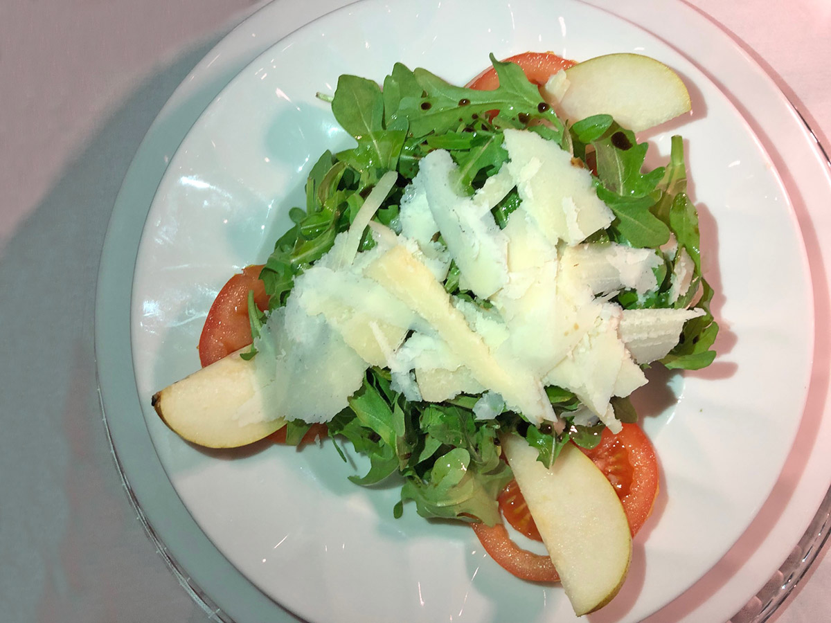 Ensalada de Arúgula con peras, tomates y láminas de parmesano