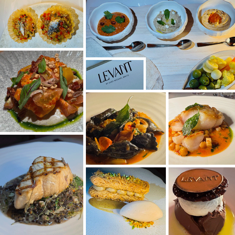 El galardonado Chef Michael White, ganador de varias Estrellas Michelín y múltiples premios más, abre las puertas de Levant, un restaurante ubicado en el Hotel La Concha, que brinda una experiencia culinaria de influencias mediterráneas, italiana y del medio oriente. Un concepto completamente nuevo en San Juan, en cooperación con el Chef Ejecutivo Sebastián Rosado, también galardonado chef puertorriqueño. Ambos reparten sus experiencias culinarias en platos que impresionan a los paladares más exigentes. Los visitamos para reseñarlos y nos recibieron con un amuse-bouche de montadito de boquerón a la vinagreta sobre un delicado ratatouille, perfecto para entonar el apetito. Seguimos con un aperitivo combinado de humus, baba ganoush, y pimientos rostizados, estos últimos con semillas de granada, acompañados de pan pita de la casa. Todos muy sabrosos, mis favoritos fueron el baba ganoush y el de pimientos.